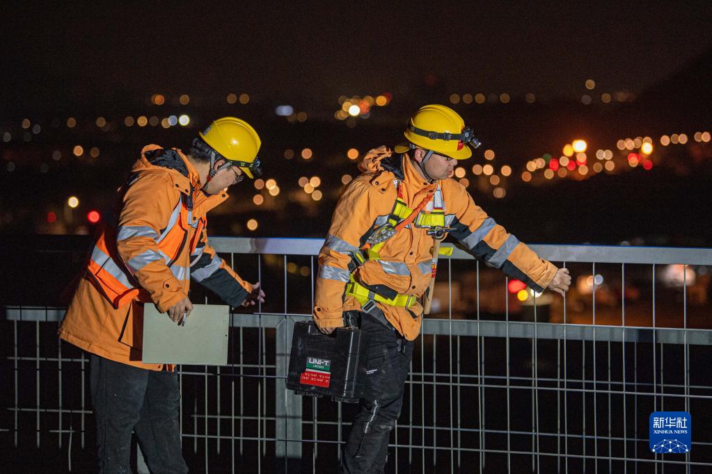 近日,浙江省迎來降溫天氣。鐵路寧波工務段椒江橋隧工區的工人們利用夜間高鐵線路的“天窗期”,頂著冬夜的寒風對杭臺高鐵椒江特大橋進行全方位檢查,確保線路安全。