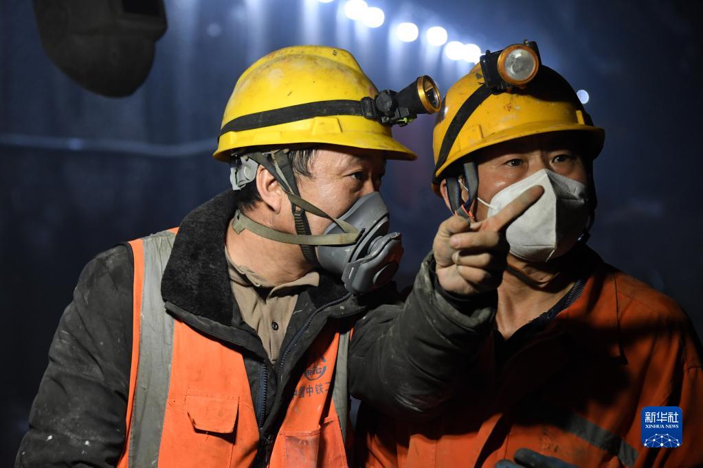 1月17日,兩名中鐵二局建設者在海底隧道施工現場交流。