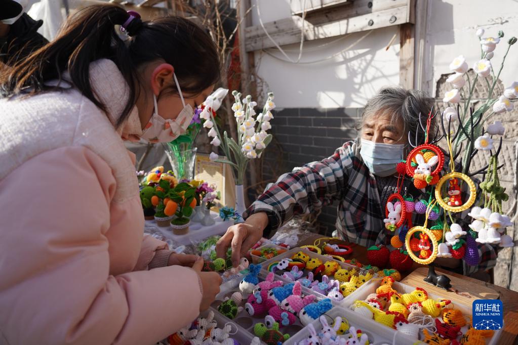 1月18日,一名兒童在濟南曲水亭歷史文化街道挑選手工藝品。