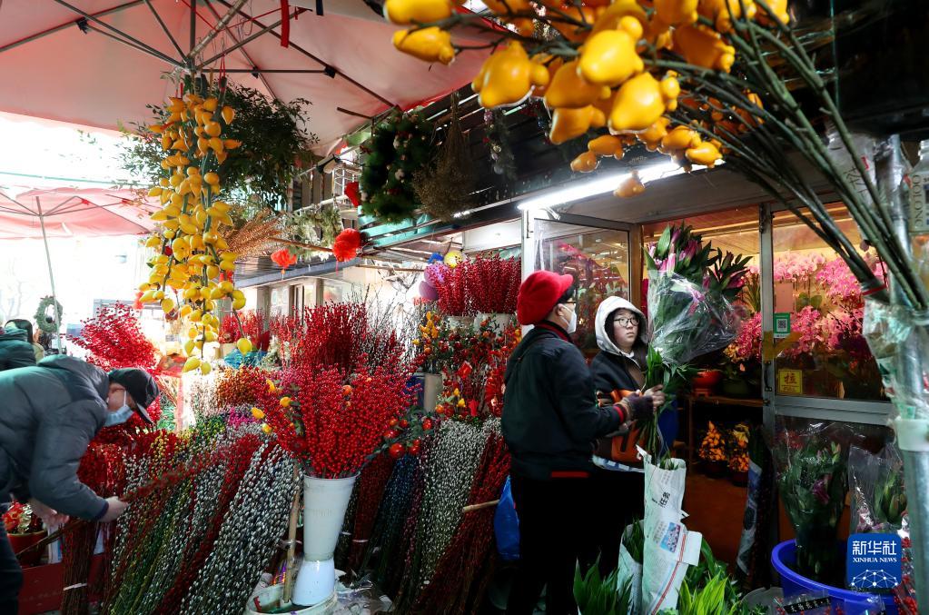 1月18日,市民在上海徐匯區的一家花卉市場內選購年宵花卉。