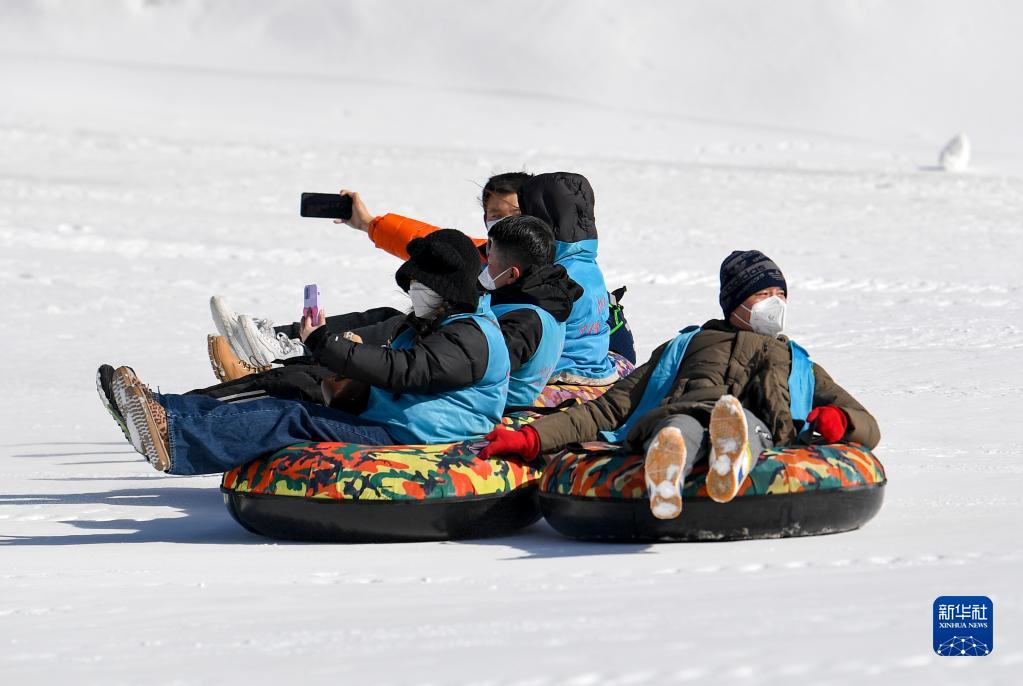 1月18日,殘疾人在銀川市閱海滑雪場體驗(yàn)雪圈項(xiàng)目。
