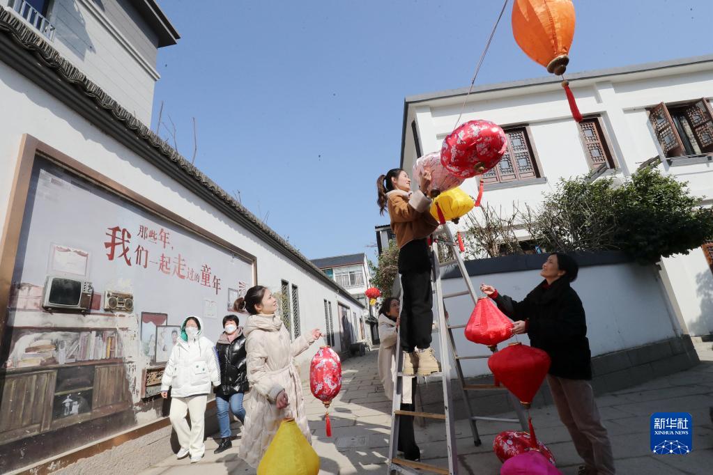 1月18日,浙江省湖州市德清縣乾元古城的居民在弄堂里掛燈籠。