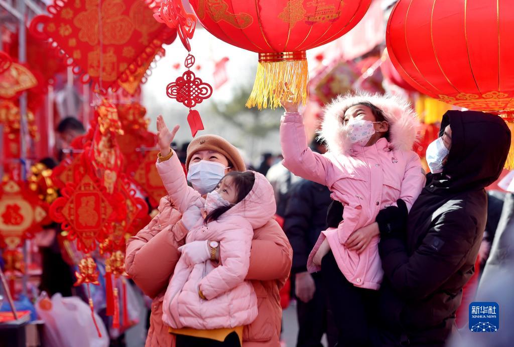 1月18日,人們在河北省石家莊市正定縣的年貨大集上購置紅燈籠等新年飾品。