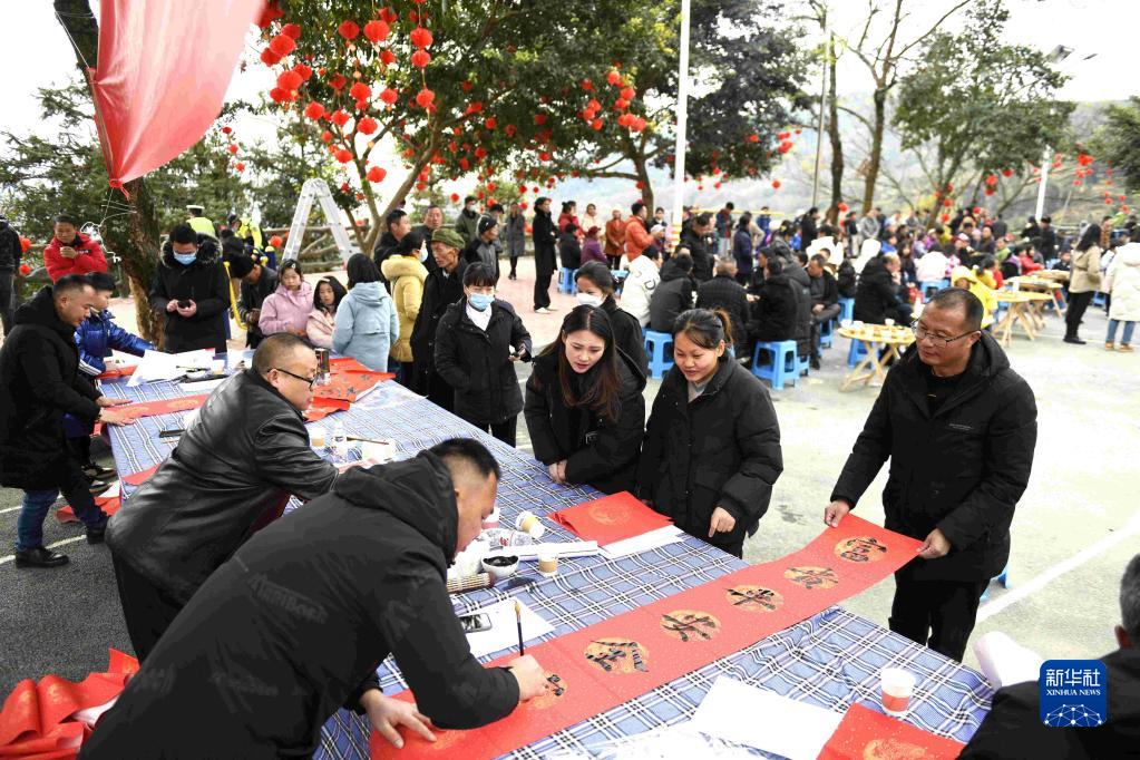 春節臨近,各地舉行寫春聯送祝福活動,書法志愿者為群眾書寫并贈送新春對聯和福字,送上新春祝福。