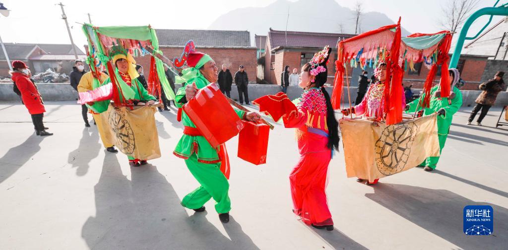 春節臨近,河北省遵化市鄉村民俗演出活動陸續展開,民間藝人們表演舞龍舞獅、劃旱船、趕驢等傳統民俗節目,迎接新春佳節。