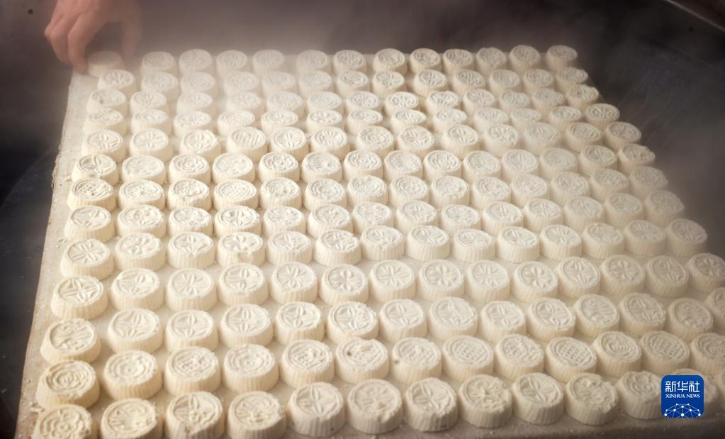 這是在貴州省遵義市務(wù)川仡佬族苗族自治縣丹砂街道桃符社區(qū)拍攝的當?shù)靥厣c心酥食(1月18日攝)。制作酥食時,先將糯米打成粉,再加入融化的白糖液揉搓至稍有黏稠感,然后將其壓入模具里輕輕敲動、倒出,最后上鍋蒸熟即可。