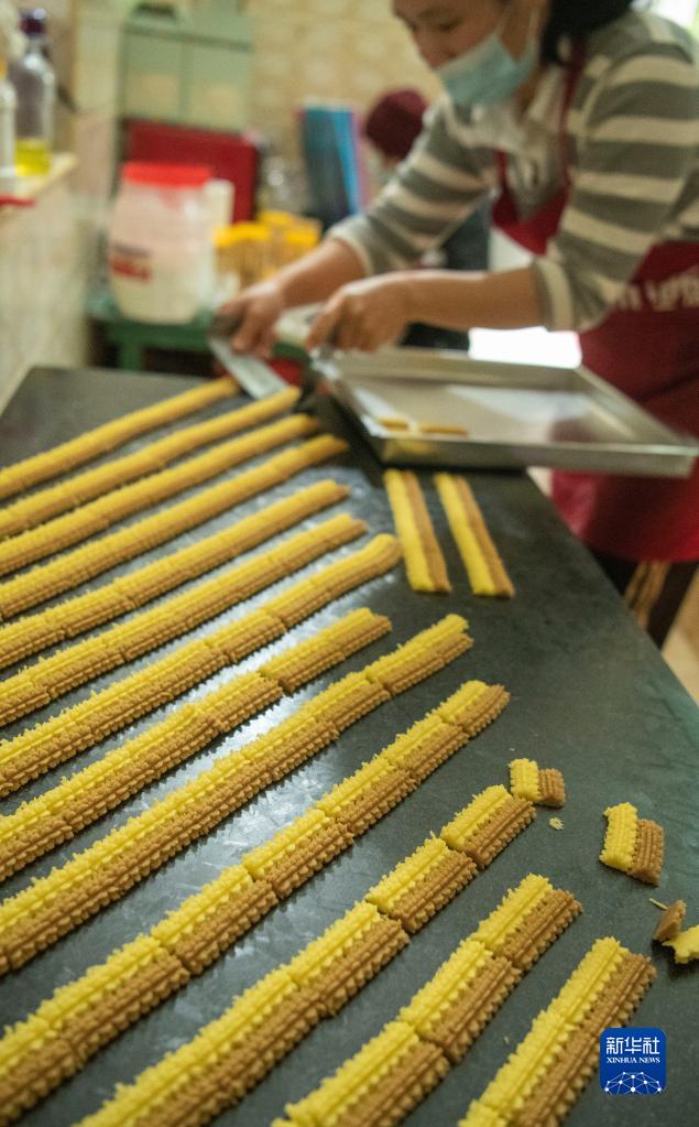 1月18日,在海南省瓊海市彬村山華僑經濟區,村民龐曉英在制作特色年糕。