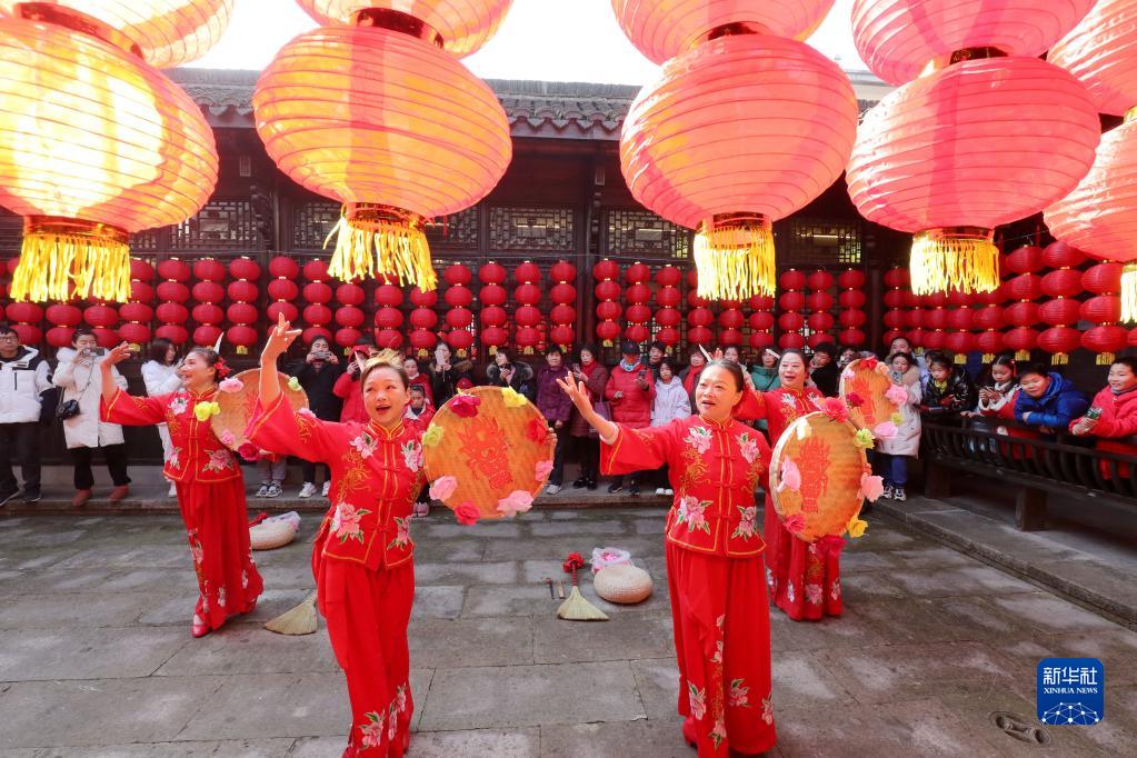 1月18日,民間藝人在浙江省湖州市德清縣乾元古城弄堂里表演國家級非物質(zhì)文化遺產(chǎn)節(jié)目《掃蠶花地》。