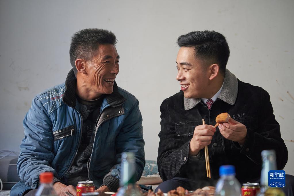 1月17日,在位于四川省涼山彝族自治州越西縣中所鎮(zhèn)的家中,沙馬伍且和父親開心地聊天,享用彝族美食坨坨肉。