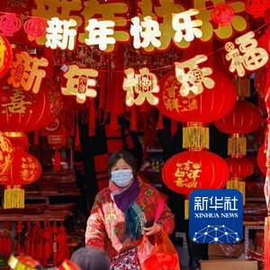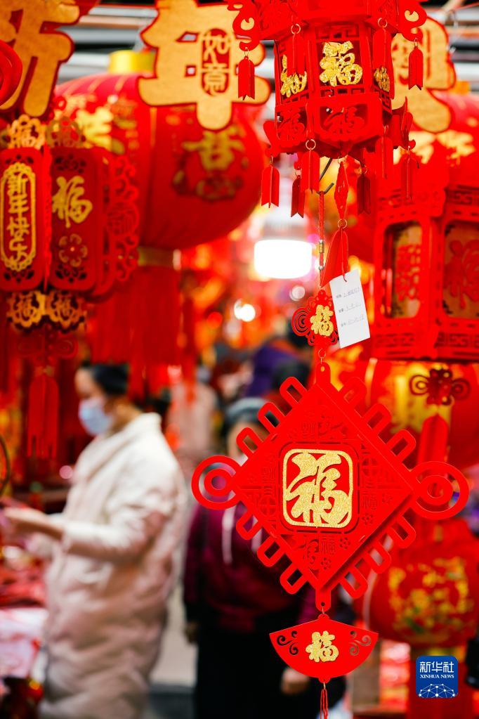 1月19日,人們在四川成都荷花池批發(fā)市場選購節(jié)慶用品。