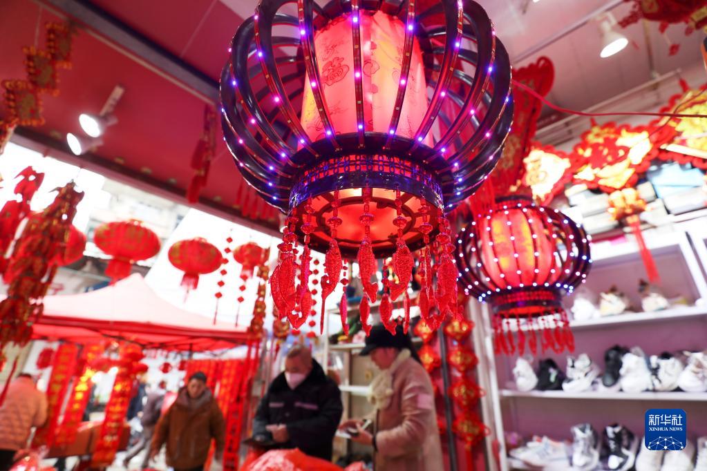 1月19日,市民在湖南省資興市一家年貨市場選購春節(jié)飾品。