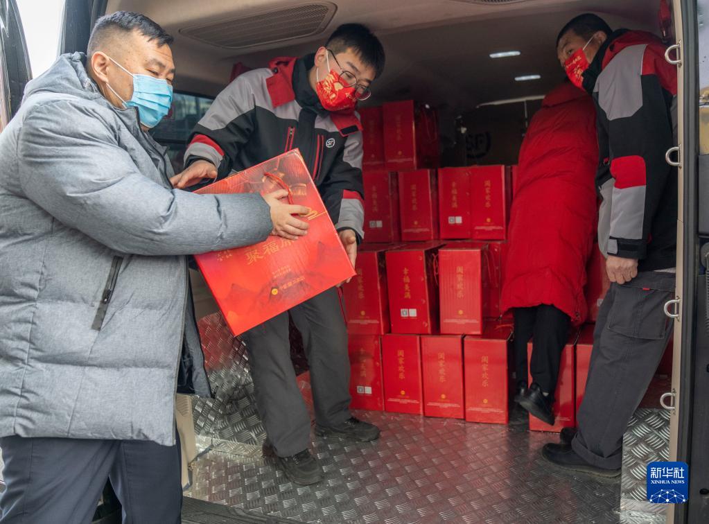 1月19日,工作人員在北京中國職工之家搬運(yùn)年夜飯預(yù)制品禮包。