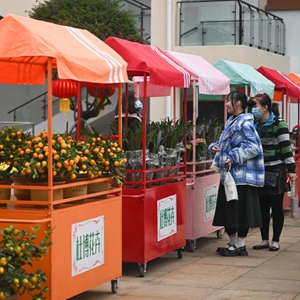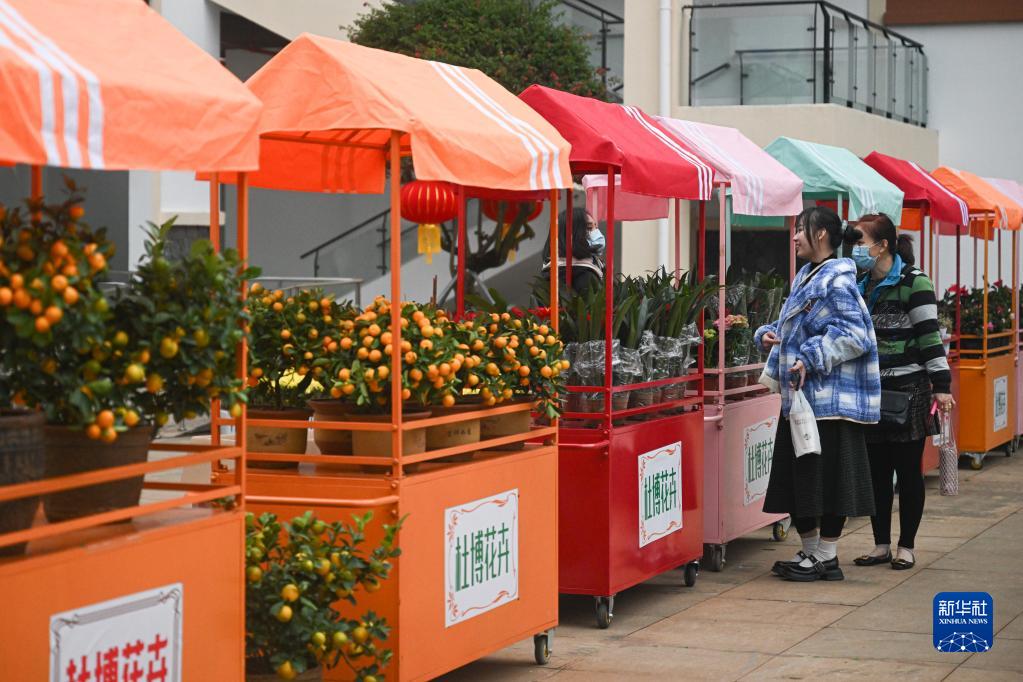 1月18日,顧客在海南熱帶花卉交易(拍賣(mài))市場(chǎng)選購(gòu)花卉。