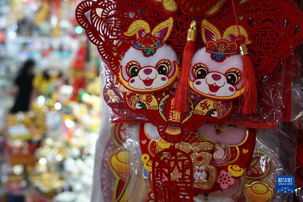 農歷新春臨近,位于越南南部的胡志明市年味漸濃。盡管癸卯年是越南貓年,這里也有著“兔元素”的年貨和擺件。