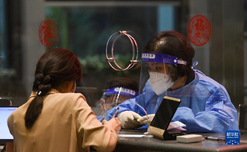 1月19日,海口美蘭邊檢站民警在為入境旅客辦理入境手續。