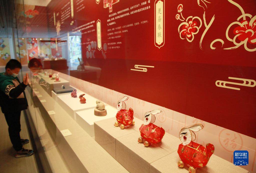 1月19日,觀眾在江蘇省南京市六朝博物館參觀“我們的節日·福兔迎春——癸卯年賀歲展”。