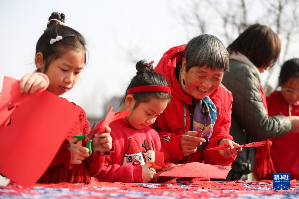 1月19日,在浙江省湖州市德清縣洛舍鎮(zhèn)三家村,孩子們學(xué)習(xí)制作生肖兔剪紙。