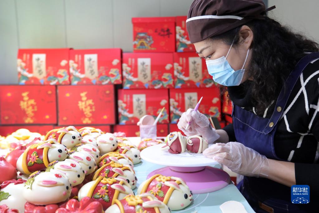 春節臨近,安徽省淮北市一些面點師以兔為主題,創作出各式各樣的“萌兔”花饃,供應節日市場,迎接新春佳節的到來。