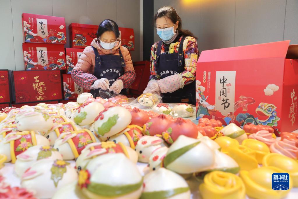 春節臨近,安徽省淮北市一些面點師以兔為主題,創作出各式各樣的“萌兔”花饃,供應節日市場,迎接新春佳節的到來。