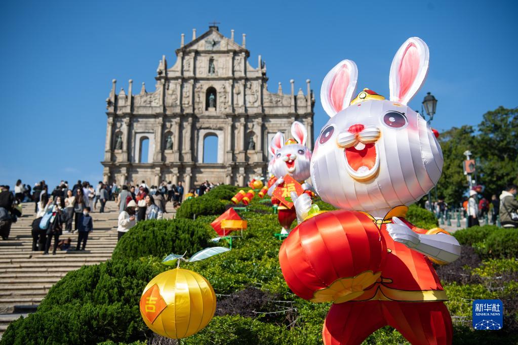 1月18日,游客在澳門大三巴牌坊前游覽。
