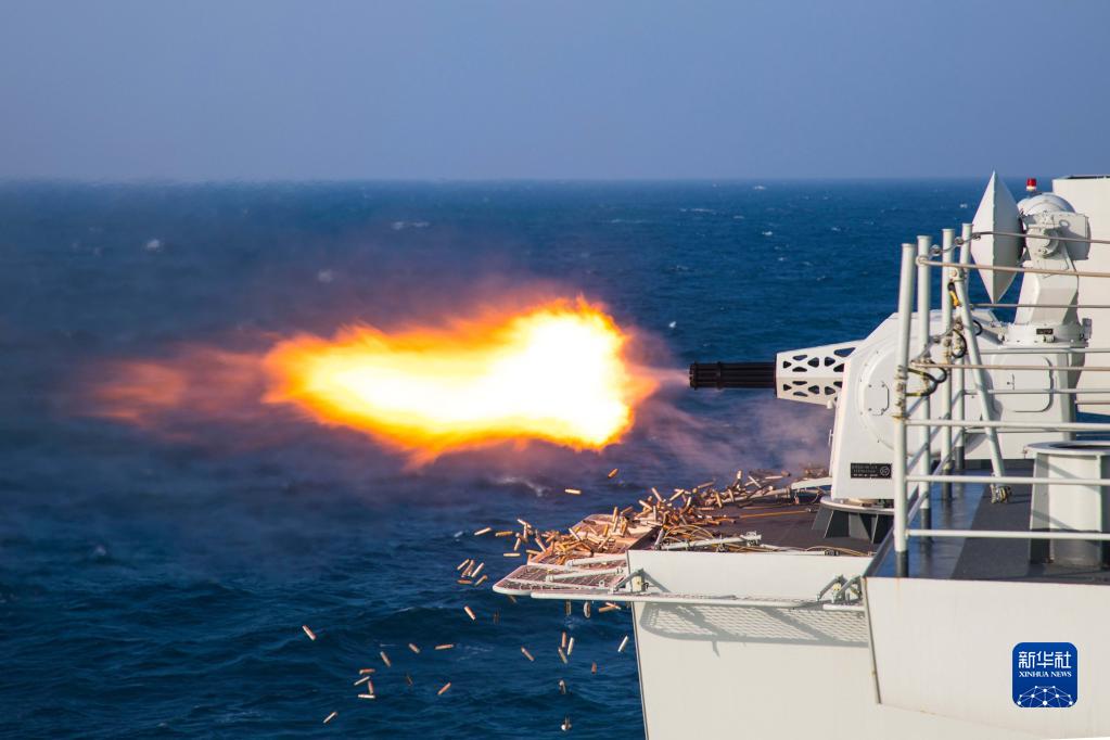 演練中,海南艦副炮對海上目標開火(資料照片)。