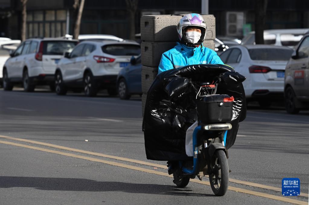 在西安市灞橋區(qū),李文在配送的路上(1月18日攝)。