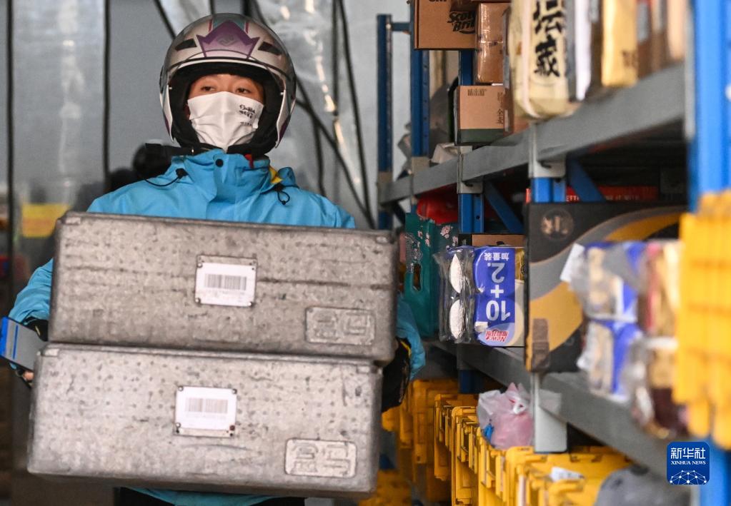 李文在西安市灞橋區一家超市物流倉庫取貨(1月18日攝)。