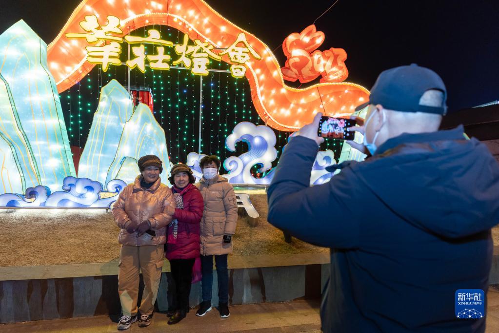 1月18日,人們在莘莊燈會上拍照游玩。