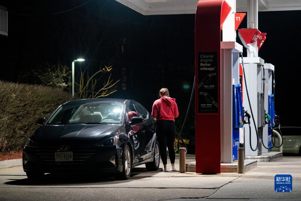 1月18日,在美國弗吉尼亞州阿靈頓,一名女子給汽車加油。