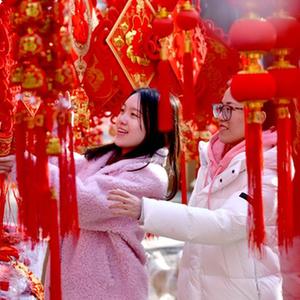 春節將至,在河北省邢臺市南和區的年貨集市,不少市民選購節慶飾品、春聯、福字等年貨,迎接新春佳節的到來。