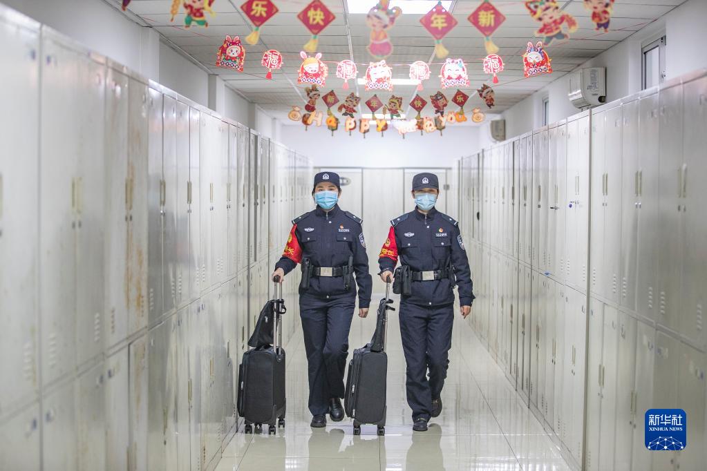 1月18日,在重慶鐵路公安處乘警支隊,“芳華”女子乘務警組的譚琳(左)、鮑婕準備值乘。