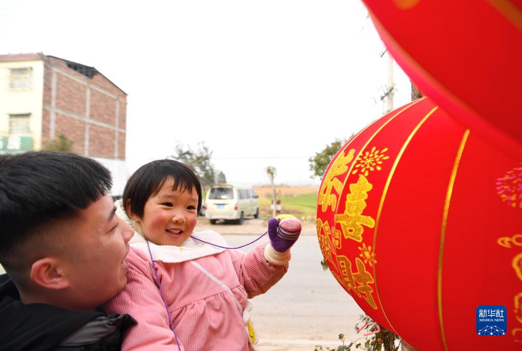 1月19日,靳亞克抱著女兒靳佳穎買燈籠。