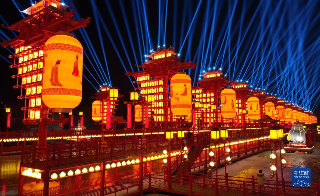 當(dāng)日,河北省唐山市豐南區(qū)河頭老街張燈結(jié)彩,吸引市民前來(lái)逛街景、看演出、品美食,處處洋溢著濃濃的年味兒。