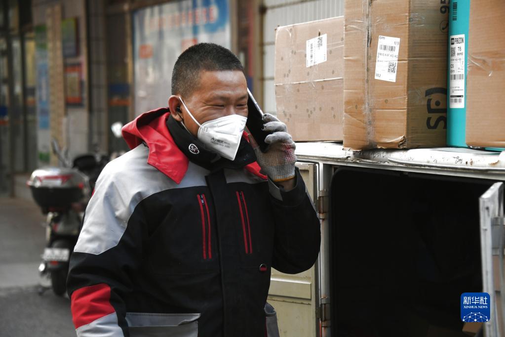 1月21日,順豐速運快遞員楊敬山在北京市海淀區中關村街道希格瑪社區準備為社區居民送快件。