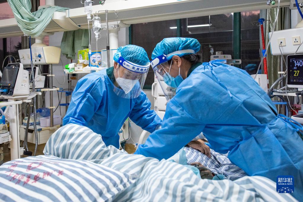 1月21日,安徽省蕪湖市繁昌區人民醫院重癥醫學科值班護士在給患者進行護理。
