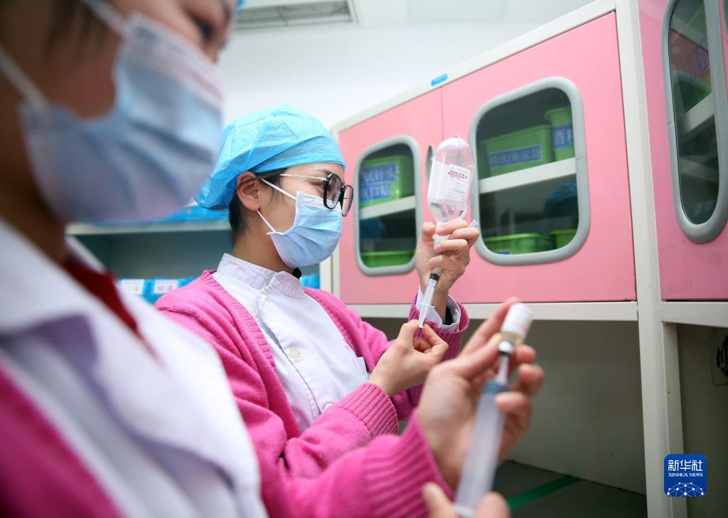1月21日,貴州省黔南布依族苗族自治州福泉市中醫醫院護理人員在配藥。