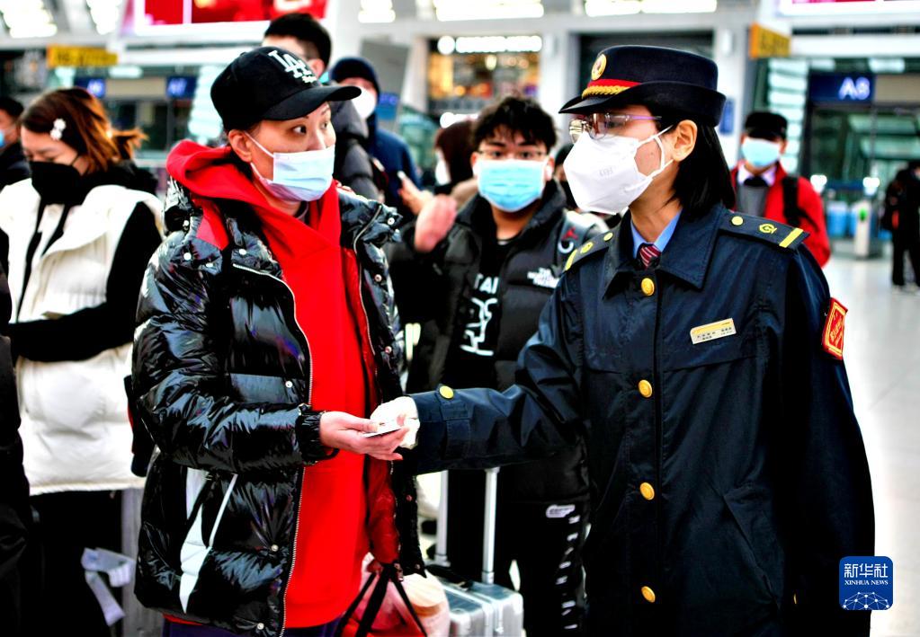 1月21日,天津西站客運值班員在解答旅客咨詢。