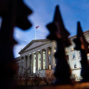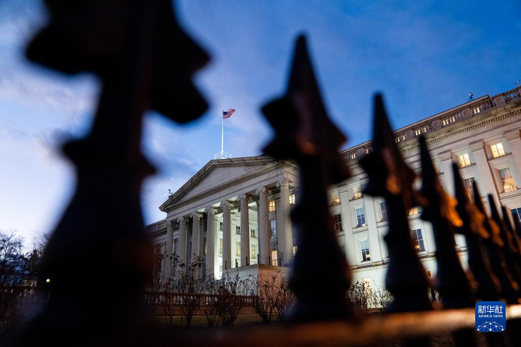 這是1月20日在美國首都華盛頓拍攝的財(cái)政部大樓。
