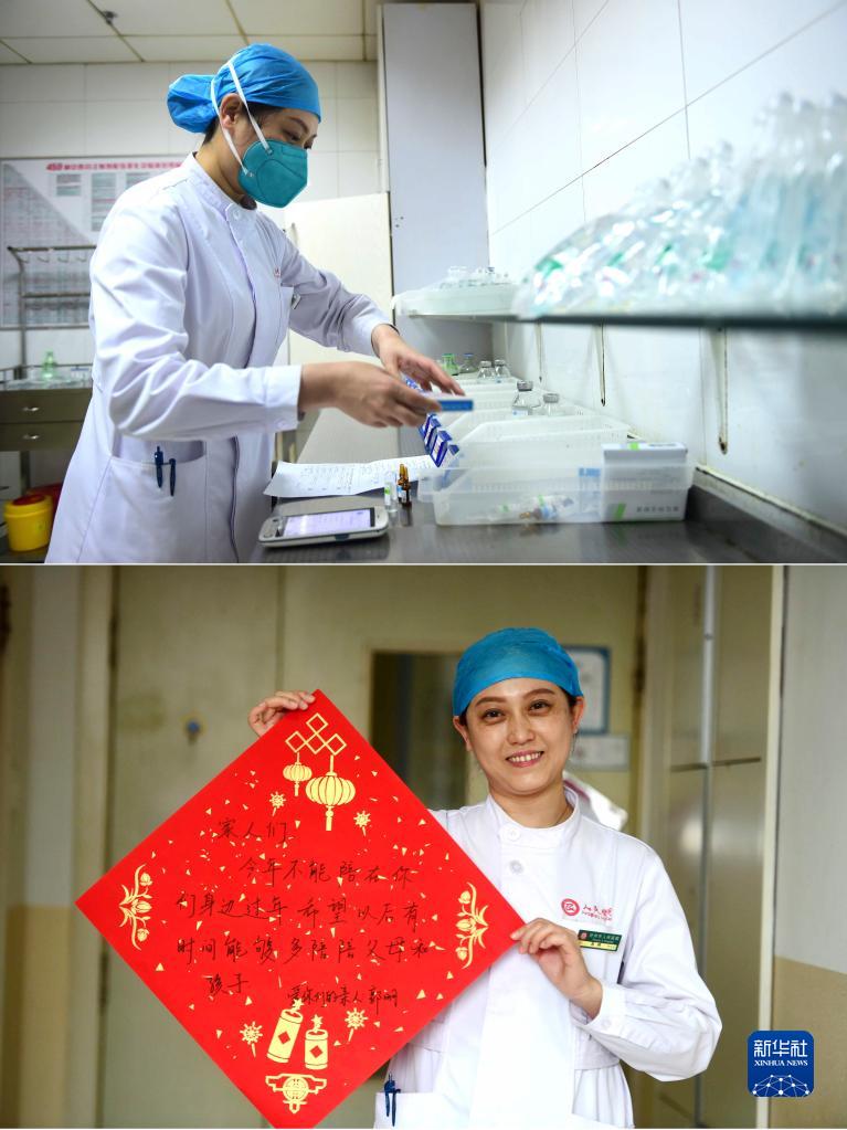 當日是除夕,眾多醫務工作者仍然在治病救人的工作一線忙碌,不能與家人團聚。在河北省滄州市人民醫院,堅守工作崗位的醫生和護士通過書寫“致歉語”的方式,向家人表達歉意并送上節日祝福。