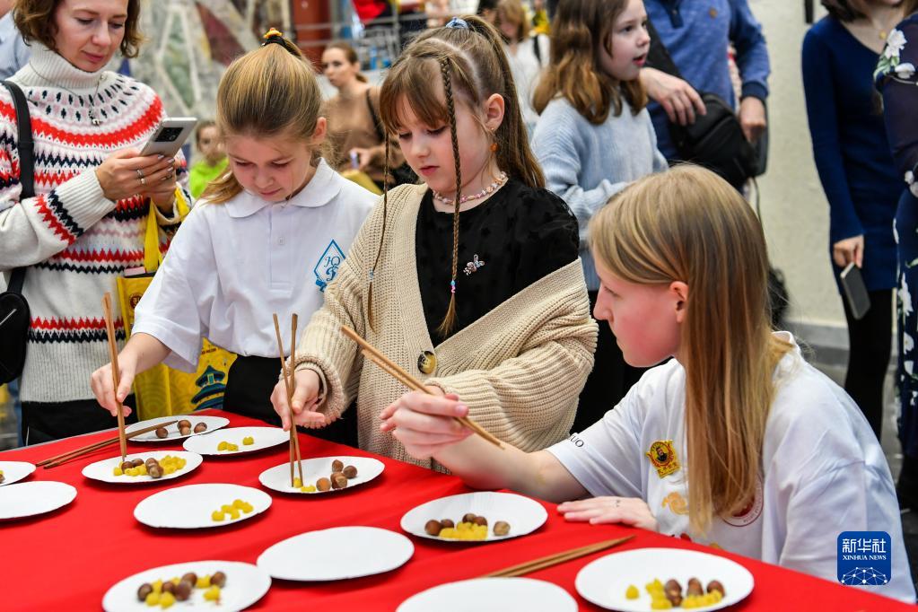 當天,迎新春中國文化體驗活動在莫斯科市政府宴會廳內舉辦,來賓在中國春節前夕集中體驗臨摹中國畫、中國書法、編中國結等中國傳統文化和民俗活動。