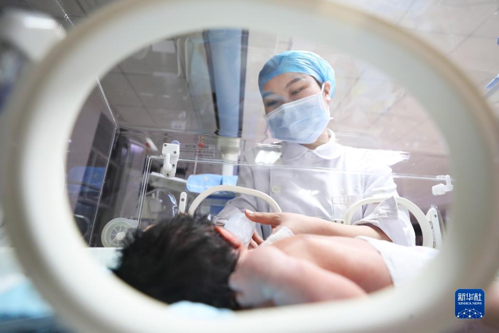 1月22日凌晨,在湖南省衡陽市,南華大學附屬第一醫院新生兒科的醫務工作者在給新生兒喂奶。