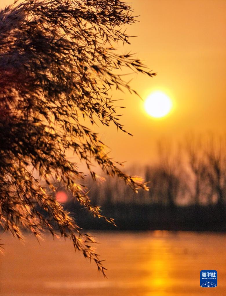 1月22日在京杭大運河天津武清段拍攝的日出。