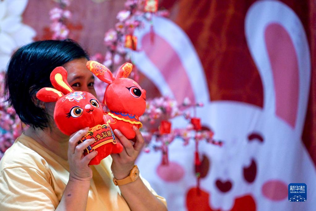 1月21日,觀眾在印度尼西亞萬丹參加春節慶祝活動時手舉兔子玩偶。