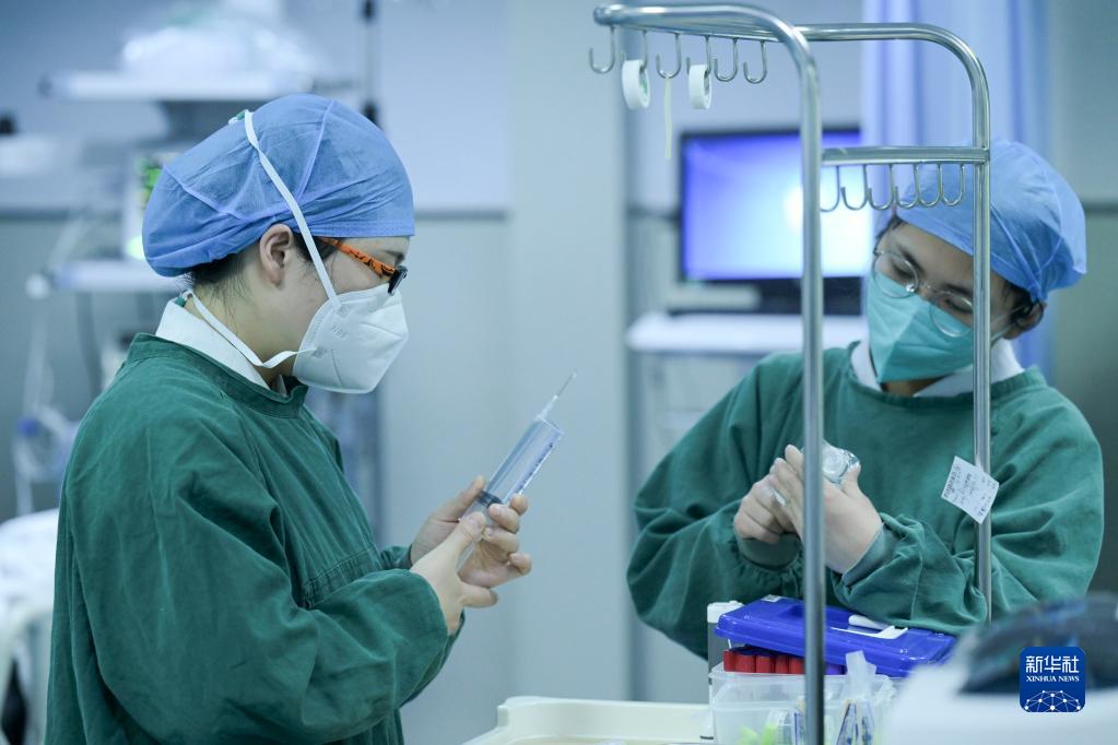 1月21日除夕夜,醫護人員在安徽醫科大學第二附屬醫院急診搶救室配藥。