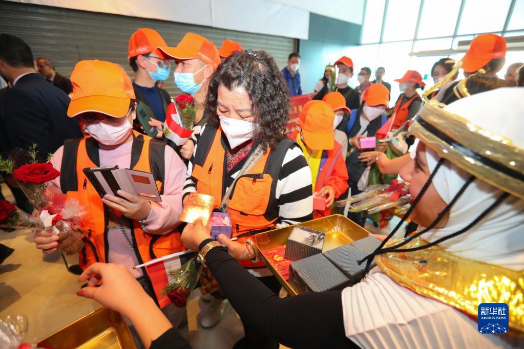 1月20日,中國(guó)游客到達(dá)埃及開(kāi)羅國(guó)際機(jī)場(chǎng)后受到熱情歡迎。