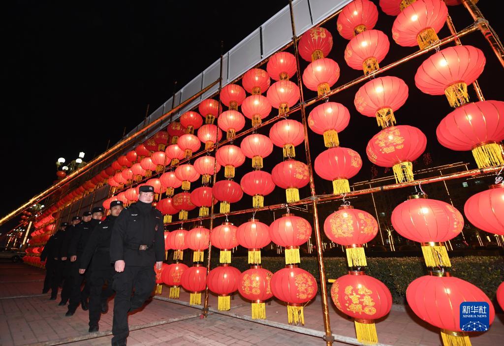 河北唐縣公安局特巡警大隊隊員在光明路進行夜間巡邏(1月21日攝)。
