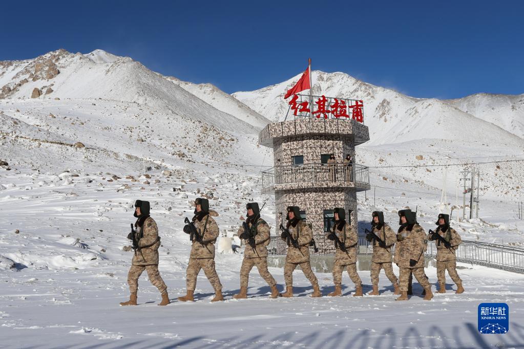 1月21日,駐守帕米爾高原的新疆軍區某邊防團紅其拉甫邊防連官兵在邊境線上巡邏。