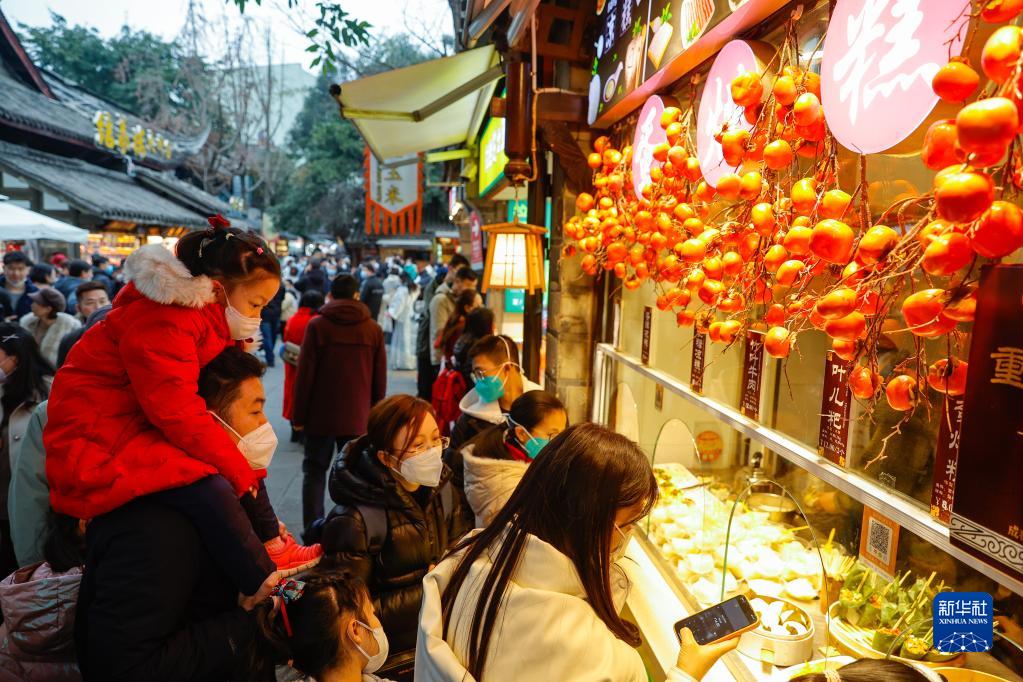 1月22日,人們在2023武侯祠成都大廟會購買傳統小吃。