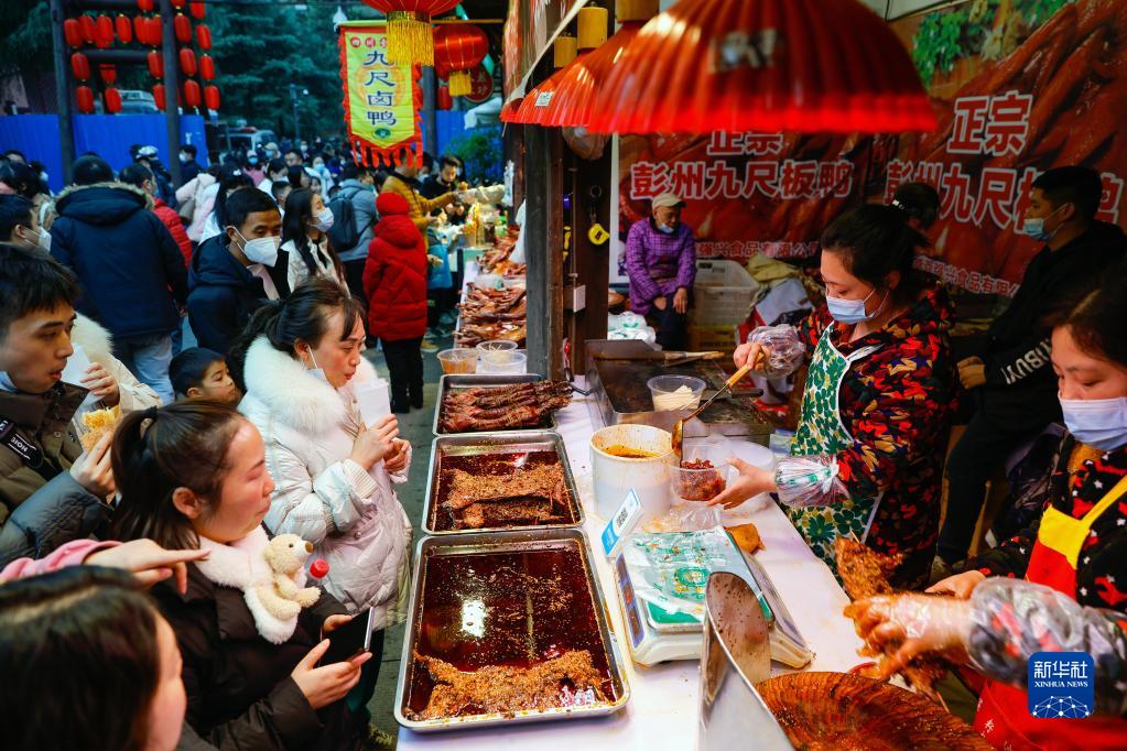 1月22日,人們在2023武侯祠成都大廟會購買小吃。