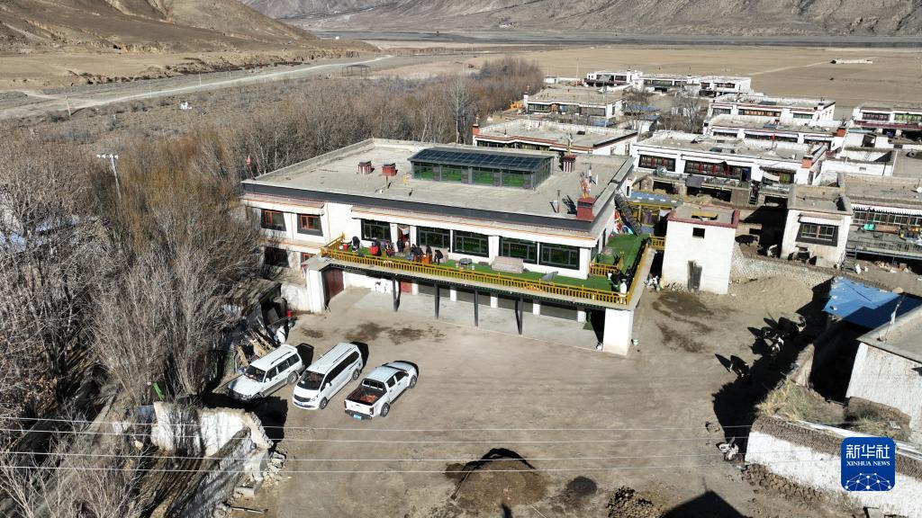 西藏日喀則市拉孜縣扎西宗鄉(xiāng)雜村次旦老人家的二層小樓(1月22日攝,無人機(jī)照片)。
